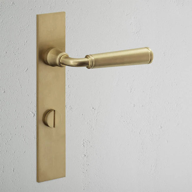 Corston Harper Langschildgarnitur mit gefedertem Türgriff und Drehknopf – Antikes Messing